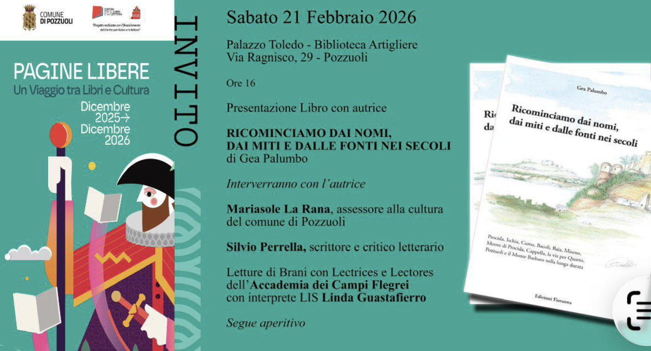 Un’opera che intreccia storia, geografia culturale e memoria dei luoghi, restituendo centralità a territori segnati da una profonda stratificazione simbolica. Con l’autrice interverranno Silvio Perrella, scrittore e critico letterario e Mariasole La Rana, assessore alla Cultura del Comune di Pozzuoli e docente di filosofia. Nel corso dell’incontro, le lectrices dell’Accademia dei Campi Flegrei accompagneranno la presentazione con letture tratte dal volume, mentre la presenza dell’interprete LIS Linda Guastafierro garantirà l’accessibilità dell’evento, sottolineando l’attenzione di “Pagine Libere” a una cultura aperta e inclusiva.