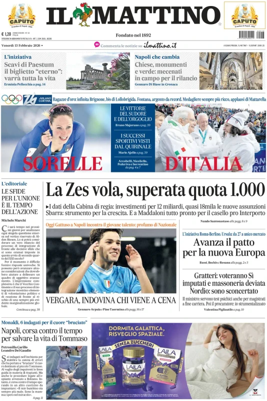 Gol in Champions, gol in Serie A e gol in Coppa Italia. E' il momento di Antonio Vergara: il centrocampista formato dal vivaio del Napoli ha realizzato il sogno di vestire la maglia azzurra e di regalare tre perle importanti nello Stadio Maradona. Da un azzurro all'altro, quello della Nazionale: Vergara può ora sognare anche la convocazione. "Vergara, indovina chi viene a cena", si legge sulla prima pagina de Il Mattino. Ecco la rassegna stampa di venerdì 13 febbraio 2026.
